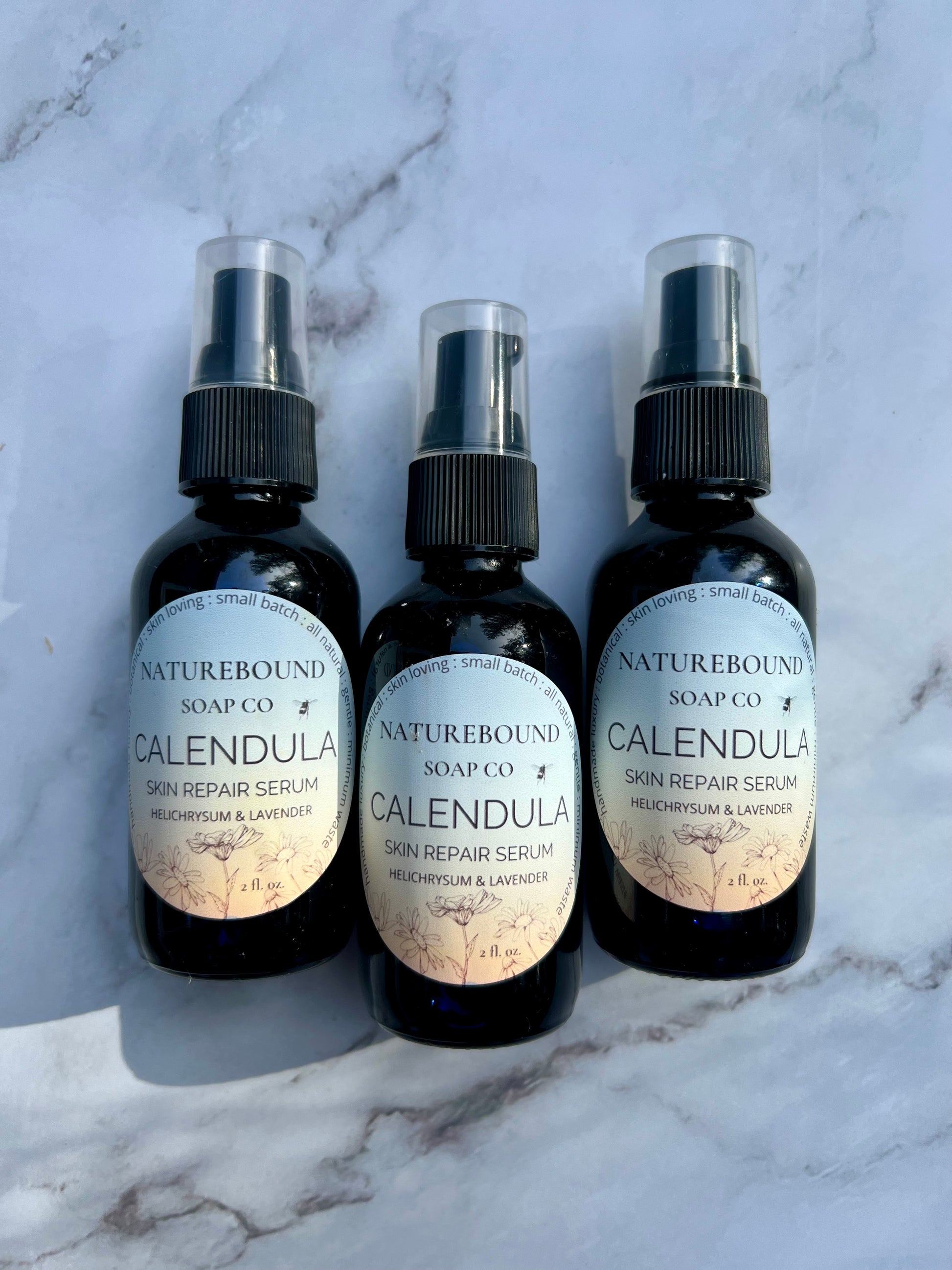 Calendula Repair Serum for face, chest & breast. Excellent as a spot treatment, applied as a moisturizer following cleansing and skin toner, and for breast massage.