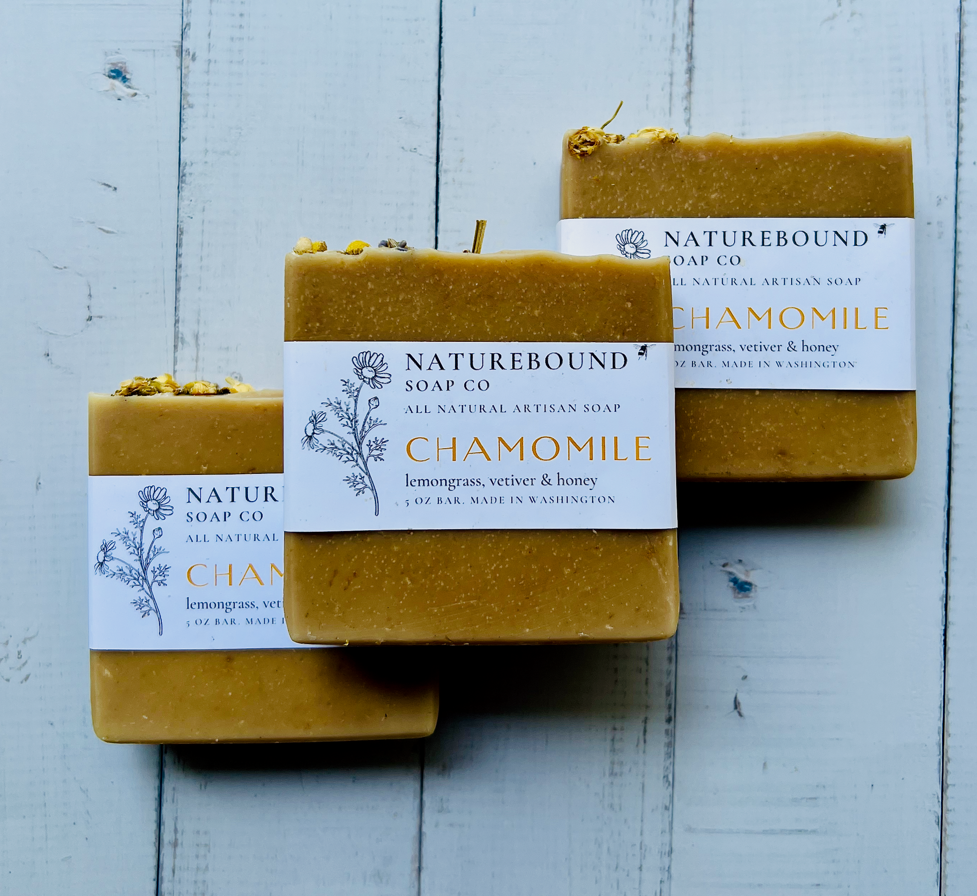 We make our soap bars from scratch and cut them by hand at our soapery in Redmond, WA. All ingredients are chosen for their skin benefits, ensuring control over quality, design, and effectiveness. We love using organic & wild botanicals and seasonal ingredients!