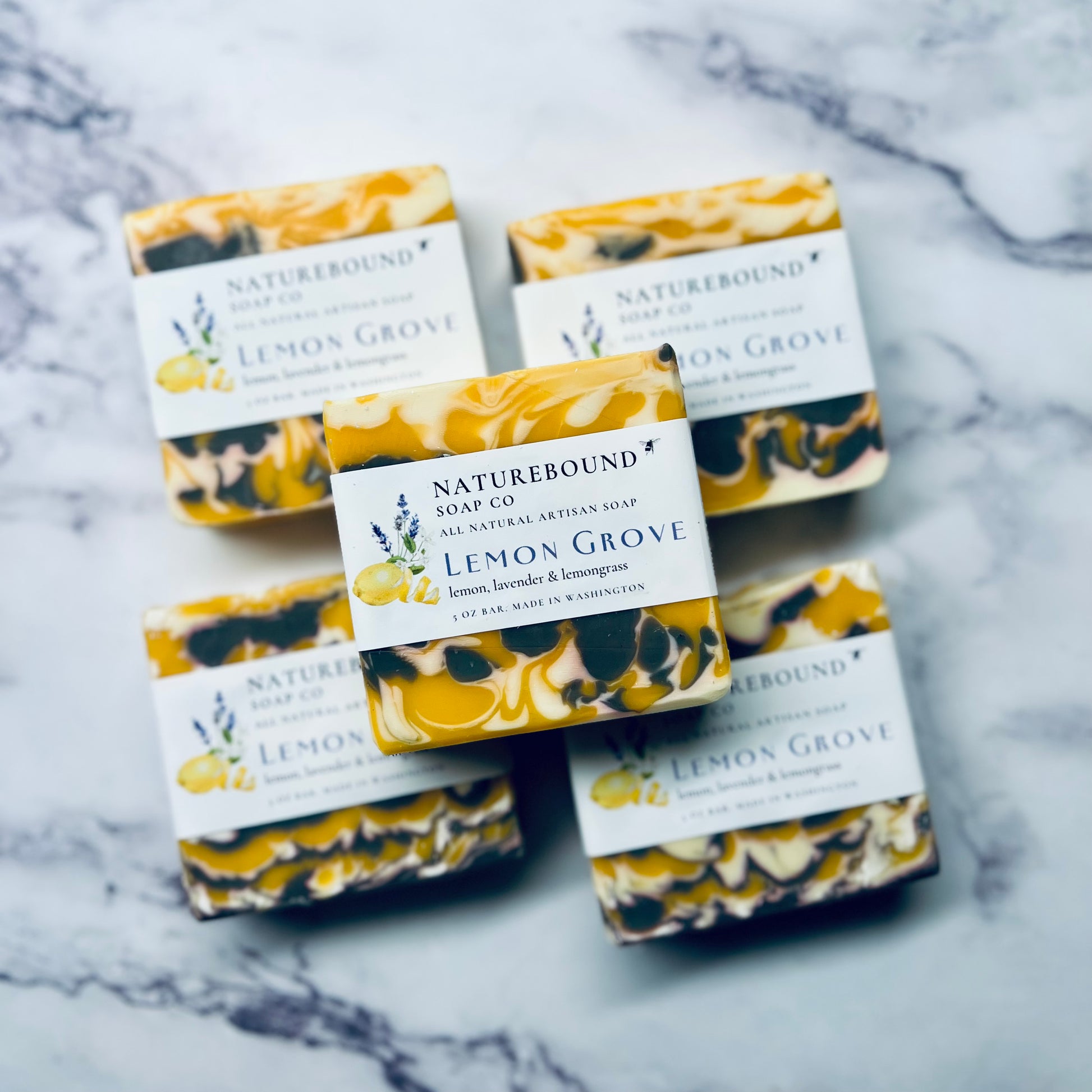 Indulge in the refreshing scent of LEMON GROVE! This natural soap bar combines the invigorating scents of lemon, lemongrass, and lavender to give your skin a deep clean and leave it feeling rejuvenated. Experience the benefits of these natural ingredients for a truly refreshing and revitalizing shower.